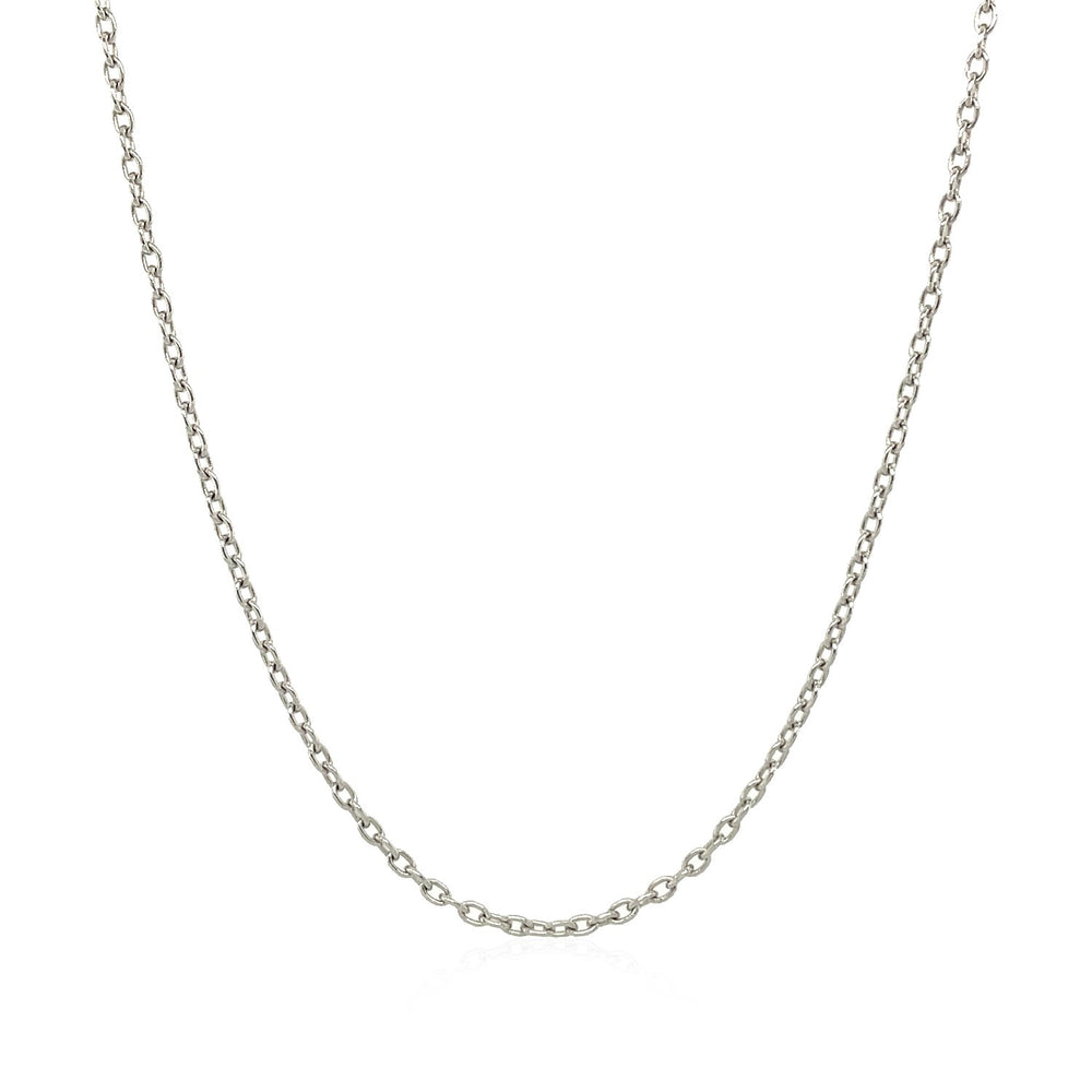 This oval cable link chain comes in 14k white gold and has a width of 1.5 millimeters.
