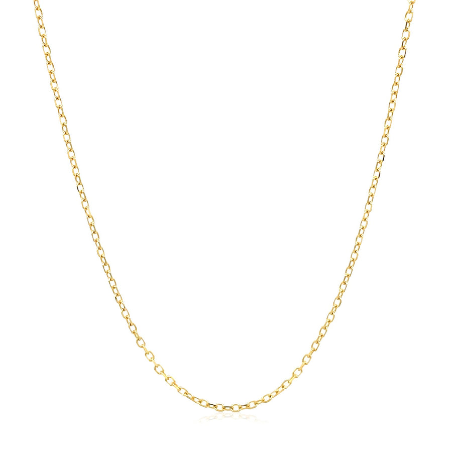 This faceted cable link chain comes in 14k yellow gold and has a width of 1.2 millimeters.