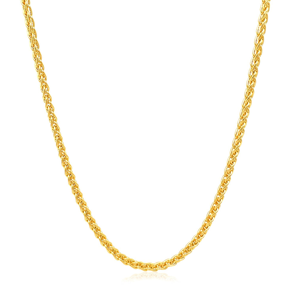 This round wheat chain comes in 14k yellow gold and has a width of 2.1 millimeters.