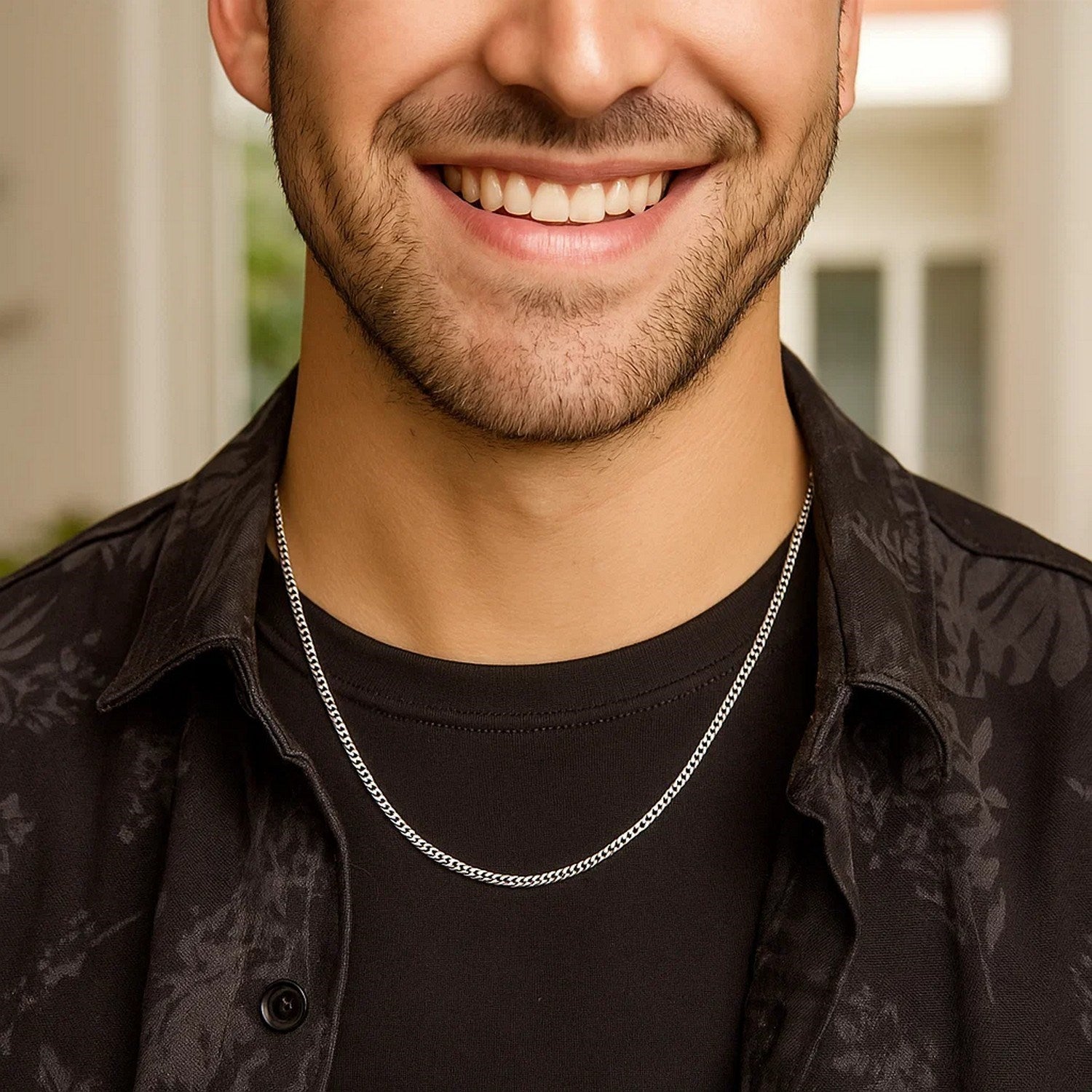 This solid curb chain comes in 14k white gold and has a width of 2.60 millimeters.