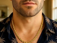 This solid diamond cut rope chain comes in 14k yellow gold and has a width of 7.0 millimeters.