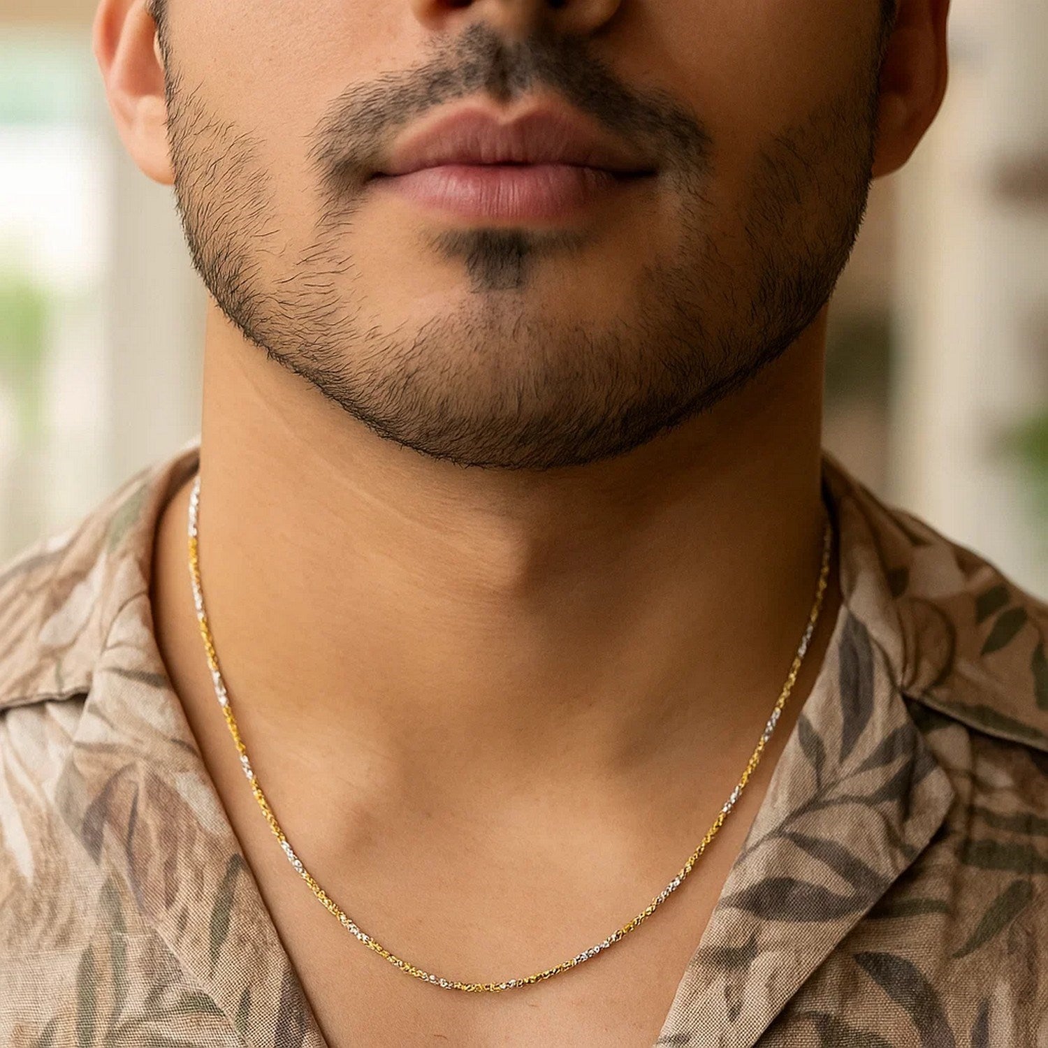 This two stone sparkle chain comes in 14k white and yellow gold and has a width of 1.5 millimeters.