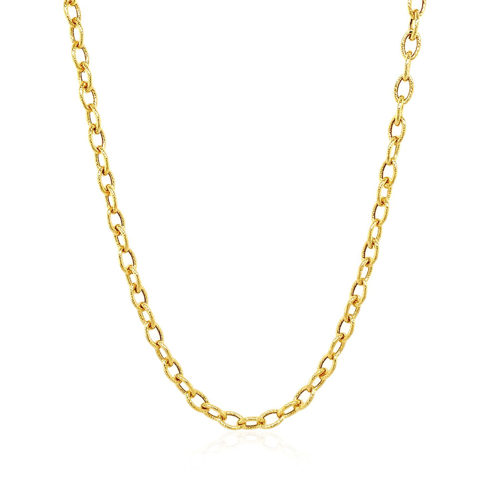 This fancy pendant chain crafted in 14k yellow gold and measures a width of 3.30 millimeters. The chain is fastened securely with a lobster clasp.