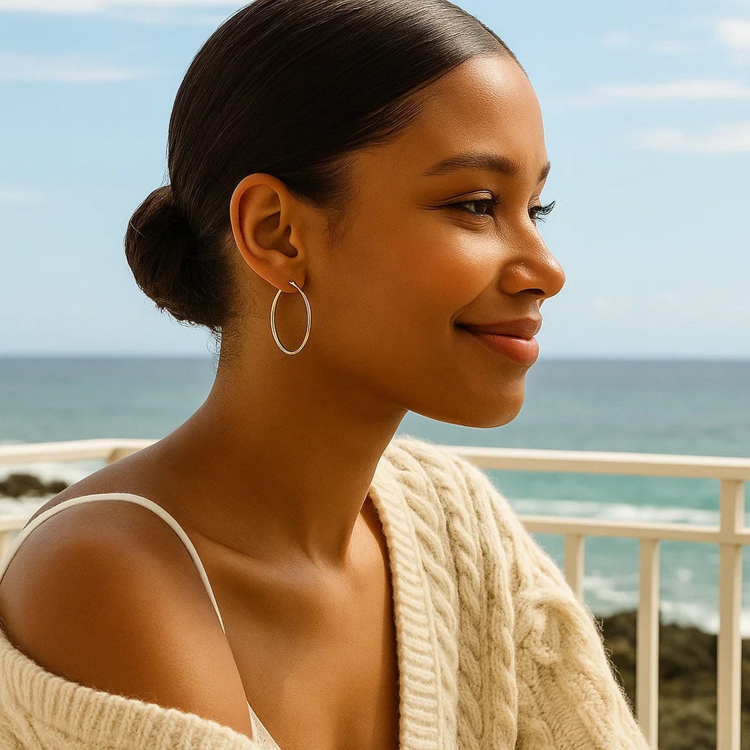 These timeless hoop earrings are crafted in 10k yellow gold and measure 30 millimeters in diameter, featuring a snap lock backing.